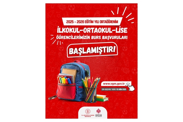 Devamını OkuVakıflar Genel Müdürlüğü İlkokul, Ortaokul ve Lise Bursları için Başvurular Başladı T.C. Vakıflar Genel Müdürlüğü tarafından ilköğretim, ortaöğretim ve lise öğrencilerine verilen ortaöğrenim eğitim yardımlarının 2025 – 2026 eğitim öğretim yılı için başvurular başladı. Burs programına başvurular Vakıflar Genel Müdürlüğü’nün web sitesi üzerinden gerçekleşecek. Burs Son Başvuru Tarihleri: 15 Ekim 2025 Detaylar ve Başvuru için için Tıklayınız […]