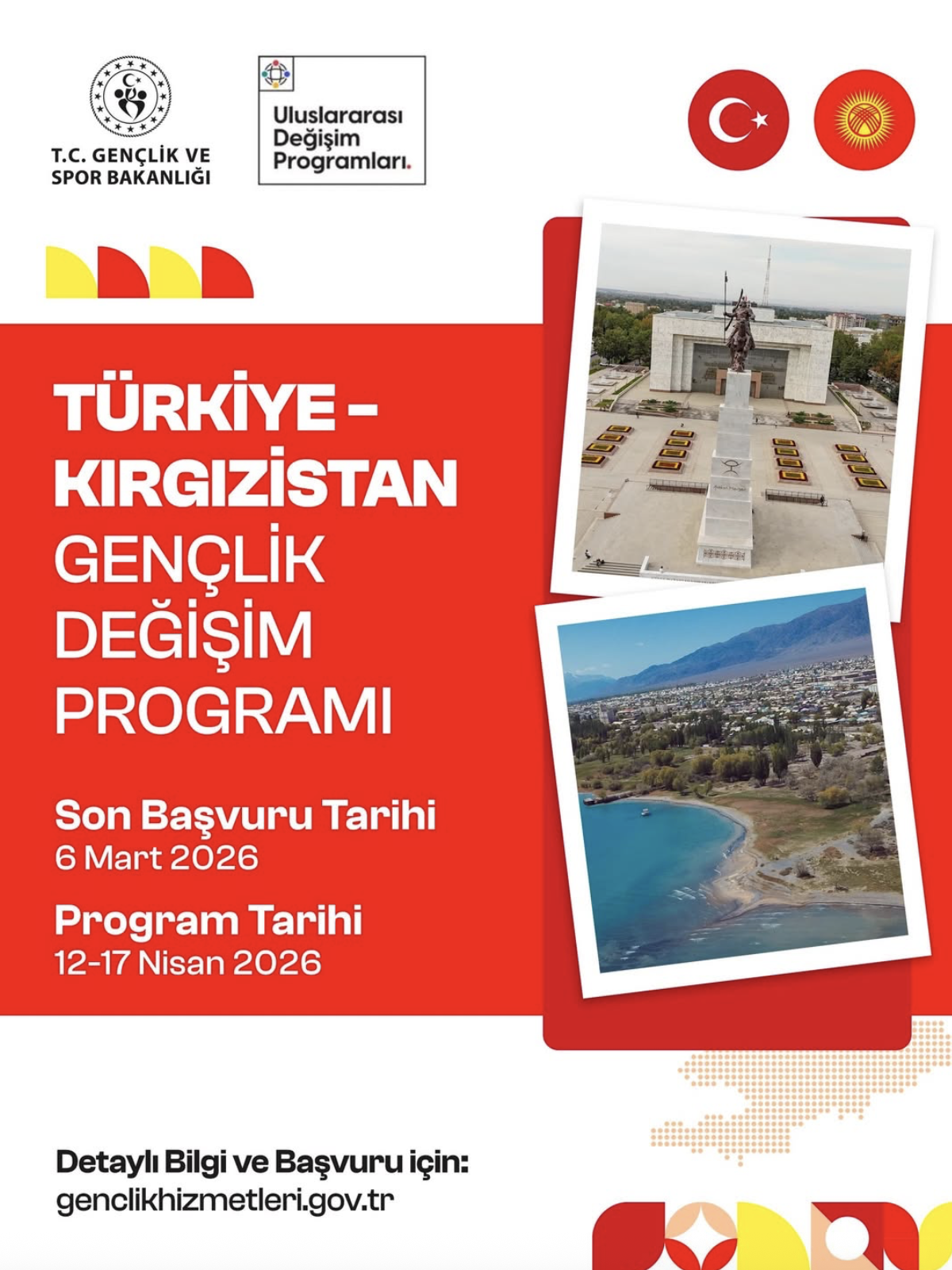 Türkiye – Kırgızistan Gençlik Değişimi Programı Başvurusu Türkiye – Kırgızistan Gençlik Değişimi Programı Başvurusu Son Başvuru Tarihi: 6 Mart 2026 Program Tarihi: 12 Nisan –17 Nisan 2026 Program Yeri: Kırgızistan Program Hakkında Açıklama Türkiye Maarif Vakfının eğitim faaliyetleri yürüttüğü ülkelerle uluslararası değişim ve hareketlilik programlarının yapılması hususunda mutabık kalınmıştır. Türkiye ile Kırgızistan arasında iş birliğinin […]