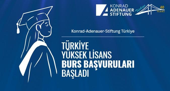 Konrad-Adenauer-Stiftung Derneği Türkiye Temsilciliği Yüksek Llisans Bursu ile lisans eğitimini başarılı bir şekilde tamamlamış ve Siyaset Bilimi, Uluslararası İlişkiler, Kamu Yönetimi, Avrupa Birliği Çalışmaları, Sosyoloji, Ekonomi, Hukuk, Gazetecilik ve İletişim alanlarının birinden Türkiye’deki bir üniversiteden yüksek lisans programına kabul edilmiş akademik başarısı ve motivasyonu yüksek öğrencilere ulaşmayı hedeflemektedir.