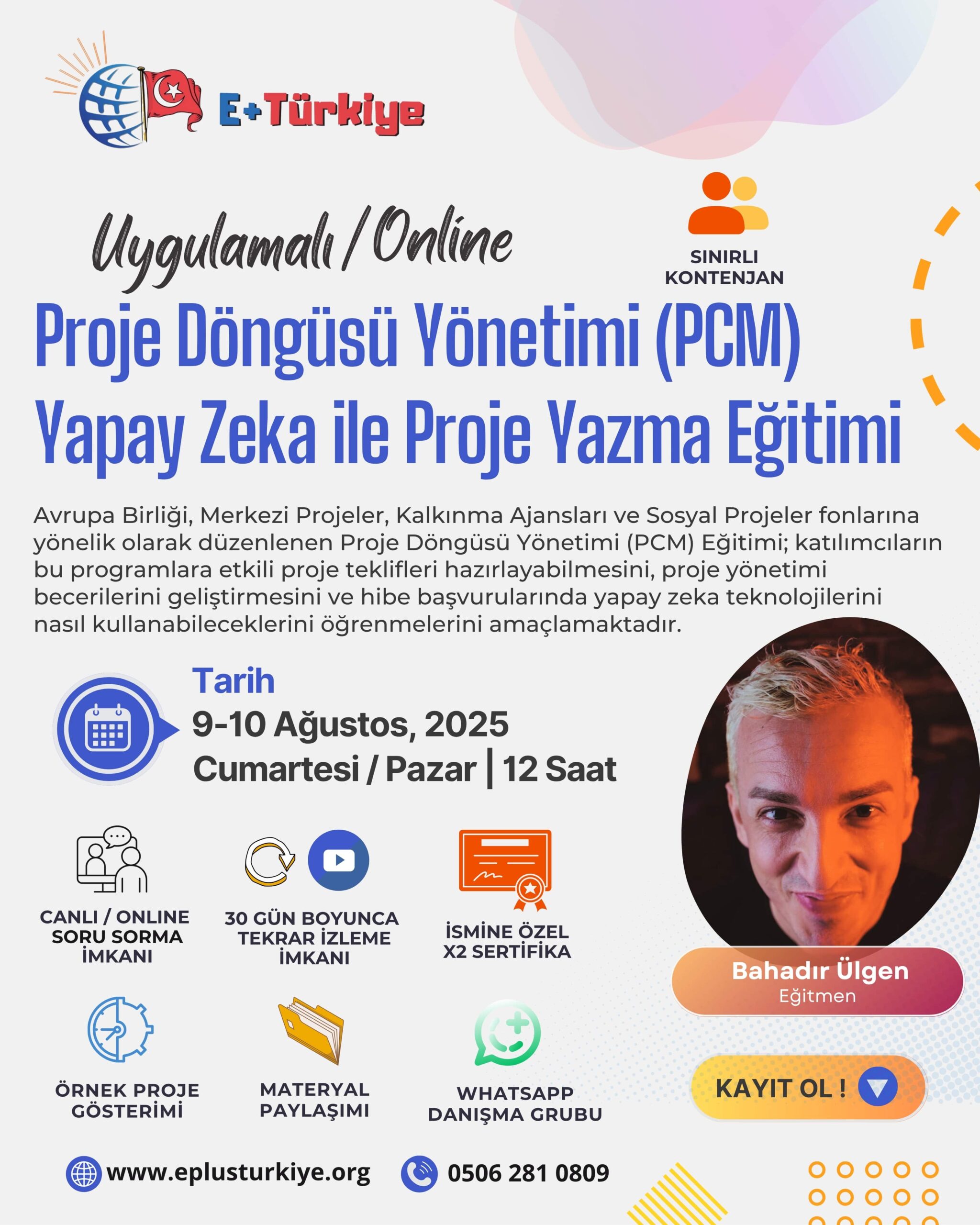 E+Türkiye olarak düzenleyeceğimiz Proje Döngüsü Yönetimi (PCM) Yapay Zeka ile Proje Yazma Eğitimi, Avrupa Birliği, Merkezi Projeler, Kalkınma Ajansı ve Sosyal Projeler Fonlarına yönelik projeler hazırlamak isteyenler için kapsamlı ve uygulamalı bir eğitim sunuyor. Bu eğitim, katılımcıların proje tekliflerini başarıyla hazırlayabilmeleri, proje yönetimi süreçlerini etkin bir şekilde yürütebilmeleri ve farklı hibe programları hakkında derinlemesine bilgi sahibi olabilmeleri amacıyla tasarlanmıştır.