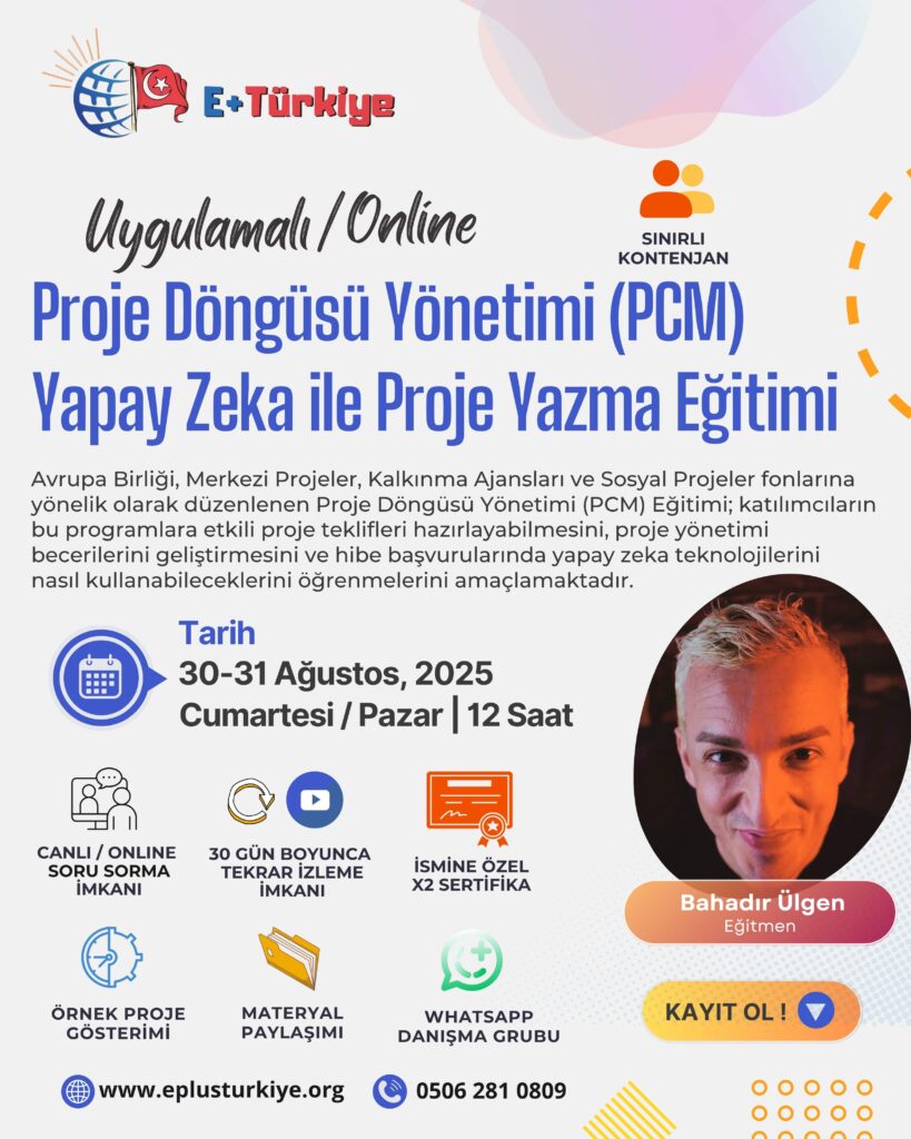 9-10 Ağustos Proje Döngüsü Yönetimi (PCM) Yapay Zeka ile Proje Yazma Eğitimi