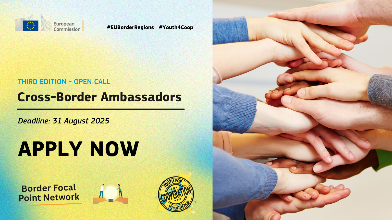 Sınır Ötesi İşbirliği Elçileri 2025 Çağrısı Başvurularınızı Bekliyor Avrupa Komisyonu’nun DG REGIO birimi ve Border Focal Point Network (BFPN), Sınır Ötesi Elçiler programının güçlendirilmiş ilk çağrısını başlatarak, AB ve EFTA sınır bölgelerinde yaşayan 18–30 yaş arası gençleri başvurmaya davet ediyor.